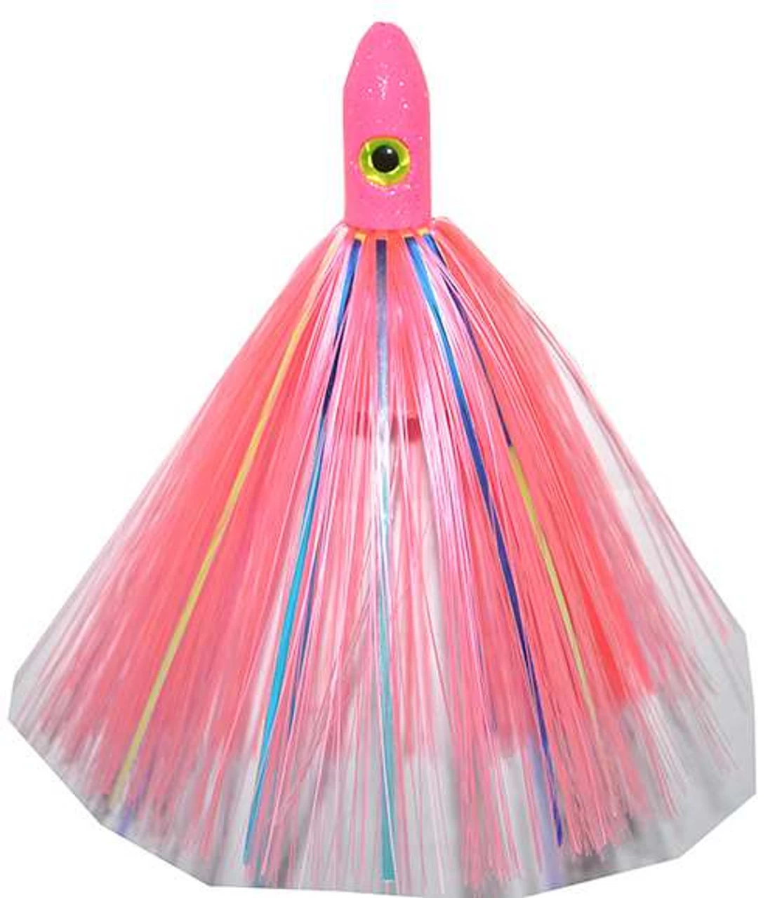 The Blue Water Candy Jag skirts are available in three sizes, Mini (3/4 oz), Tweener (1 3/4 oz), and the Bullet (3 1/2 oz). The Jag lures are perfect for accenting a rigged ballyhoo that will track true and upright within your trolling spread. The Bullets have long been known for their effectiveness on large bluefin and wahoo, while the smaller sizes are deadly on just about anything that swims, from dolphin to billfish.