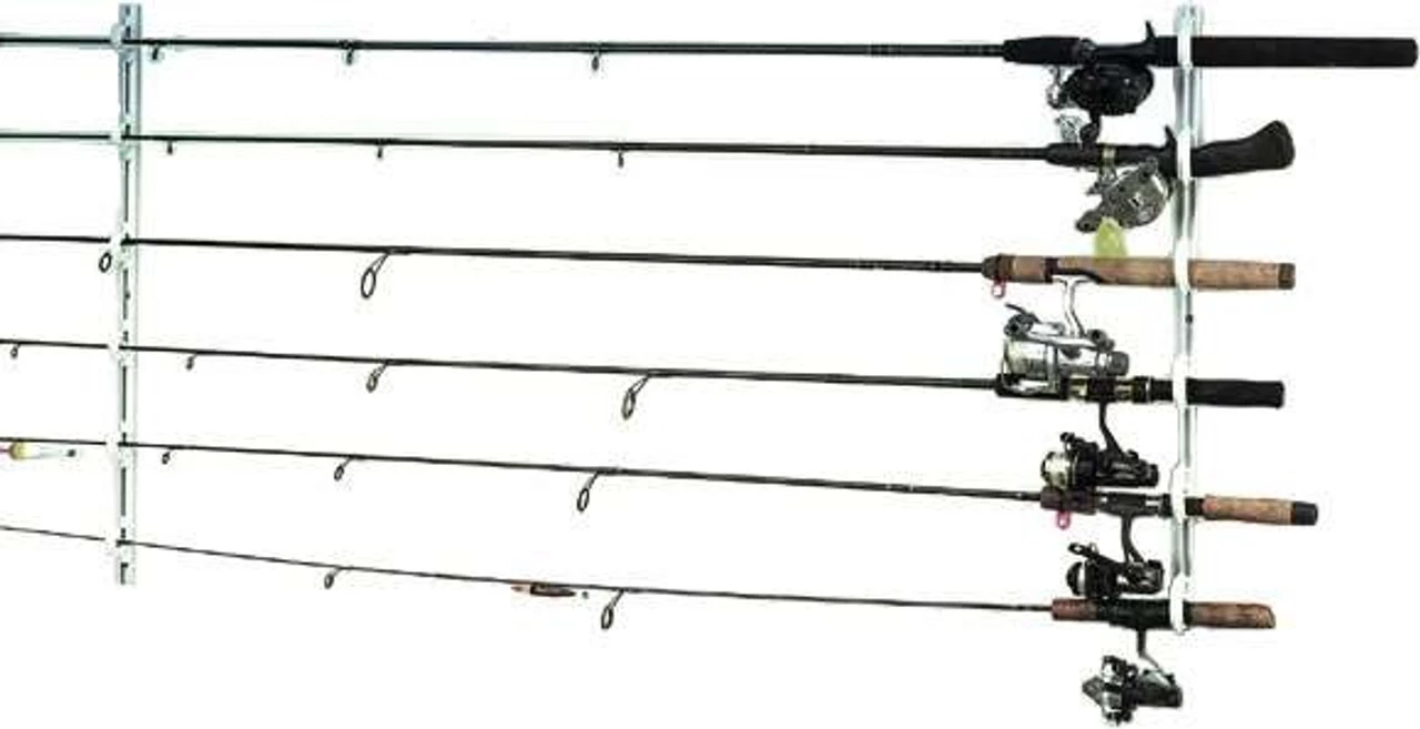 The Du-Bro 1080BG Trac-A-Rod 6 Rod Holder is one of the easiest and fully adjustable rod storage systems on the market! No more tangled or broken fishing rods stacked in a corner.