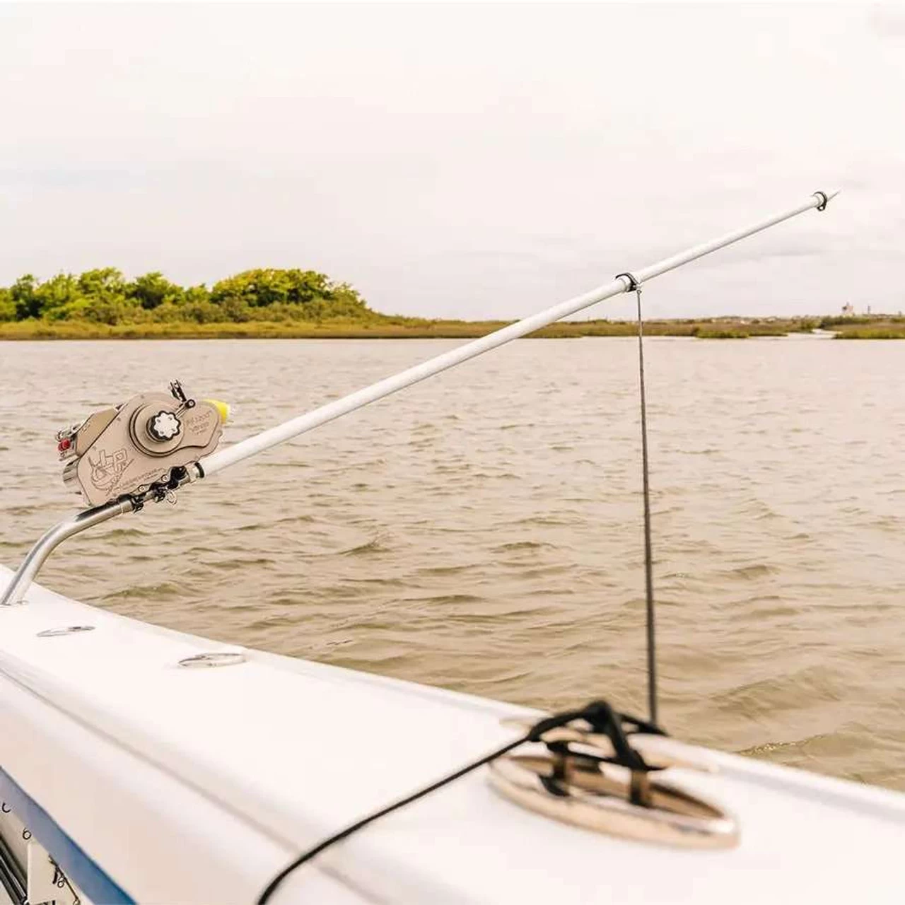 Changing the game when it comes to pulling dredges for offshore trolling, the 8 foot Gemlux Dredge Boom allows all center console boats to easily pull a dredge and sport-fishing boats to pull 4 dredges at a time. Gemlux spent hundreds of hours in the lab and on the water perfecting this vastly superior dredge boom. Made from 100% carbon fiber, this patented dredge boom system weighs only 3lbs. Fully collapsible to 69″, the boom is easy to set up and can be conveniently stored among your rods. The fully adjustable patented clamp system allows you to position the dredge perfectly. This innovative system was designed to allow anglers to fight fish right up to the bow of the boat effortlessly avoiding tangles by lifting your rod right over the boom and dredge.
