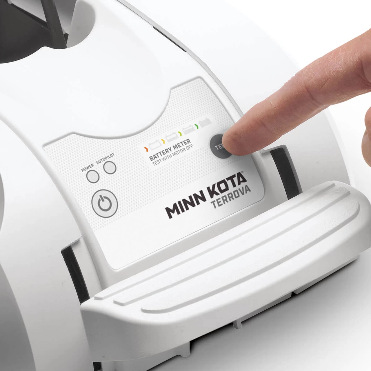 The CoPilot wireless remote comes standard on Riptide Terrova, providing totally wireless control from anywhere on the boat, and giving you push-button control of steering, speed, AutoPilot, and high speed bypass.