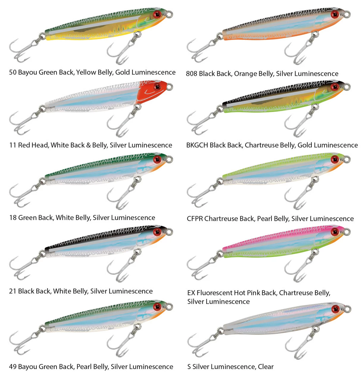 The MirrOlure MirroMinnow Suspending Twitchbaits are designed to mimic a glass minnow or rain minnow which is a favorite natural baitfish for cruising coastal predators. These lures features a bright, reflective, and luminescent insert and slender body shape, making it very realistic.