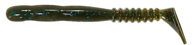 The Reins Rockvibe Shad Lures are made with a thick body and a ringed tail section that ends in a paddle. This design allows for big action as this bait gets pulled through the water. This lure is salt infused and shrimp scented.
