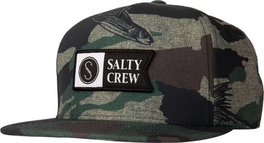 The Salty Crew Alpha Tech 5 Panel Hat is a structured 5 panel hat with Salty Crew woven damask patch across the front.