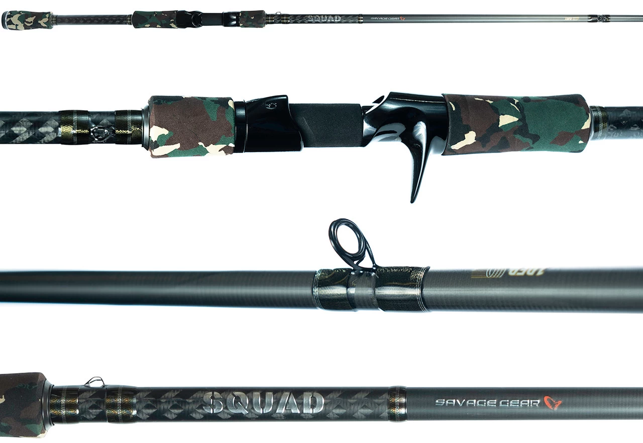 The Savage Gear Squad Casting Rods are built for the angler looking for a lightweight, performance tuned bass rod that won’t break the bank. Priced at a level that is accessible to all anglers, the Squad series rods refuse to compromise on quality. Built on 24-ton high modulus carbon blanks, these rods are lightweight, optimally balanced, and feature technique specific lengths and tapers to help you bring your bass fishing to the next level. For added durability, blanks are reinforced with Savage Gear’s advanced 1DFR technology, where material composition is altered towards the top third of the blank to greatly reinforce strength without altering the action. This technology helps minimize tip damage that can result from high sticking or overloading the rod. All models are equipped with quality components including Seaguide stainless steel tangle free guides with SiC inserts for optimal line management, along with a Seaguide blank-exposed reel seat for maximum sensitivity. Whether you’re casting worms, jigs, small crankbaits, or giant swimbaits, the Savage Gear Squad Series has got you covered at a price that’s tough to beat.