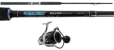 Offering high performance at a value that is second to none, the TackleDirect Silver Hook Boat Spinning Combos are the perfect go-to spinning set-up for a wide variety of techniques out in the deep. By pairing our Silver Hook Boat Spinning Rod with the latest offerings from top brands like Penn, Shimano, and Daiwa, it’s never been easier and more affordable for anglers to experience some of the best gear the industry has to offer. Our Silver Hook Boat Spinning Rod is lightweight and optimally balanced, while providing the power and backbone necessary to land some of the toughest gamefish up and down the coast. A highly versatile option for those who fish both inshore and offshore waters for a variety of species, these combos can be used for wreck fishing and bottom fishing with heavy weights, casting large swimming plugs and topwaters, live-lining medium to large size bait fish, and much more.