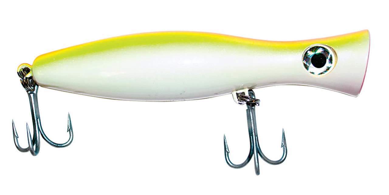 Tsunami Platinum Surface Blaster Lures are made from high-impact plastic. They are thru-wired to withstand the strongest fish. Featuring a wide, cupped face that throws a lot of water when popped, making a lot of commotion attracting fish. These poppers dig in very well, and don’t have the tendency to roll out. The 6.5″ is ideal for inshore/big game. They are also ideal for stripers and bluefish species. The smaller size is more of an inshore specific size.