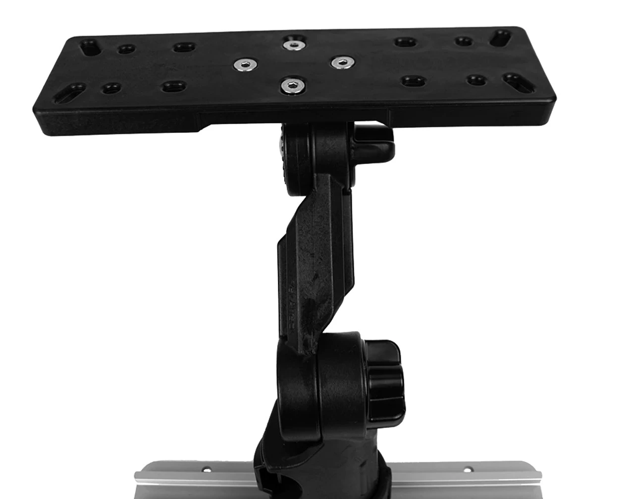 The YakAttack Rectangular Fish Finder Mount W/LockNLoad Mounting System is the cleanest and most secure mounting solution for larger Lowrance, Garmin, and Raymarine units featuring a gimbal mount such as the Lowrance Hook2 7, Garmin Striker 9sv, and the Raymarine Axion 7. The LockNLoad mounting system offers an ultra secure attachment to YakAttack GearTrac, Mighty Mount II, MightyMount XL, and most other factory-installed kayak track systems. Hardware included.